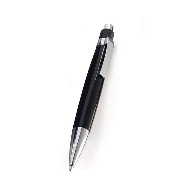 Push button u25cf ballpoint pen u25cf metal clip u25cf shiny tip u25cf black ink.