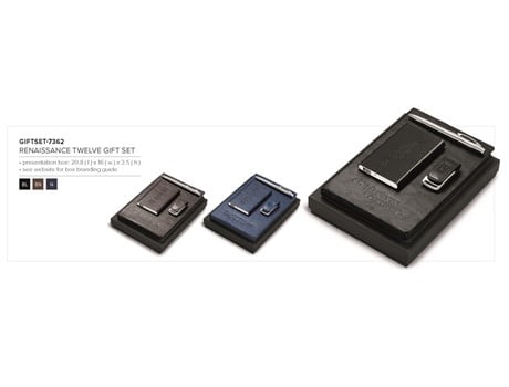 The Renaissance Twelve Gift Set includes a Renaissance Slim 4000 mAh Power Bank, Renaissance Notebook, Renaissance Memory Stick & Pythagoras Ball Pen.